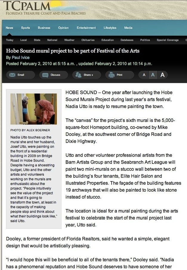 It was very special to celebrate our first year anniversary with another mural - again in conjunction with the annual Hobe Sound Festival of the Arts. The Festival was well attended and we benefited from the many pedestrians who stopped to talk. We were also pleased to receive some donations from this appreciative audience. We started during the cold and rain week before, but were in the completion stage by that week-end.