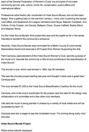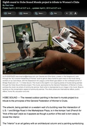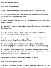 *The Hobe Sound Murals project received a 2010 grant from Women Supporting the Arts, a program of the Arts Foundation of Martin County. An evening reception was held for the philanthropic members of that group and the grant recipients at the Mansion at Tuckahoe, Indian Riverside Park, Jensen Beach on Thursday April 15th. These funds will be allocated to cover the fabrication costs for the sponsorship plaques on the next sequence of murals.